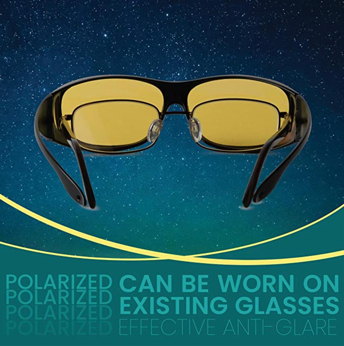 Night-vision GogglesYellow Polarized Lenses Reduce GlarePerfect For Driving At NightDurable ConstructionWrap-Around StyleFits Over Prescription LensesBonus EVA CaseBonus Microfiber Pouch